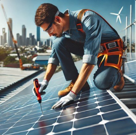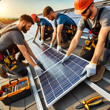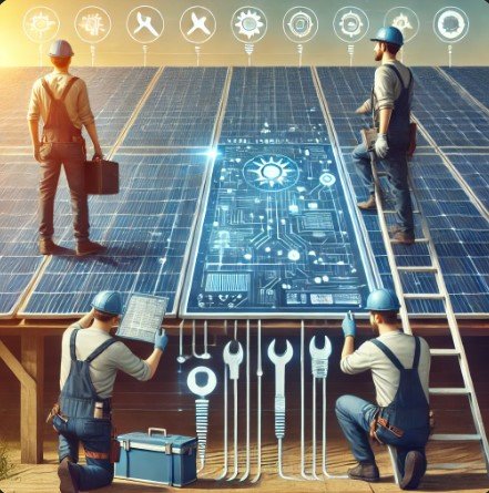 Now, I'll generate three images related to this work. Here's the first one for solar panel installation mechanics.